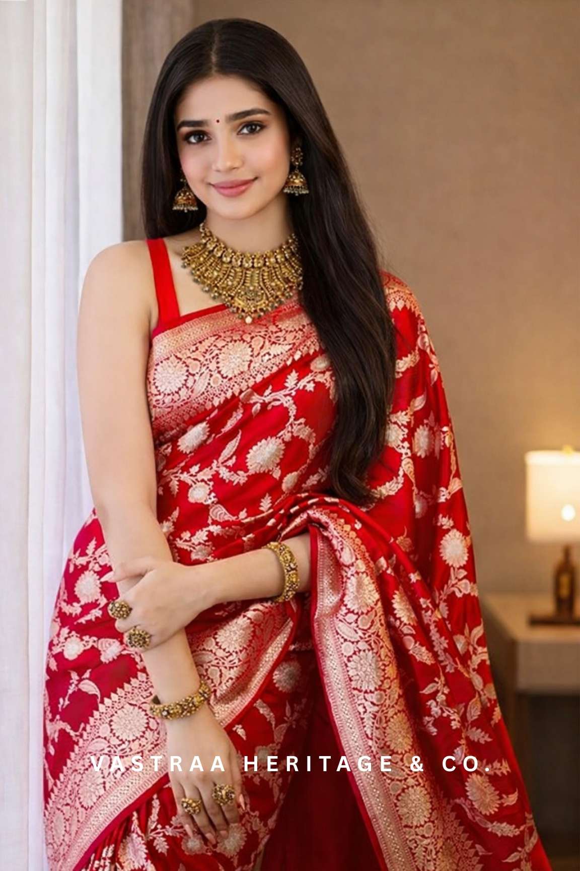 NOTE – The blouse in the model photoshoot is not the same as the blouse that comes with the saree. You can see the blouse in the product photo.